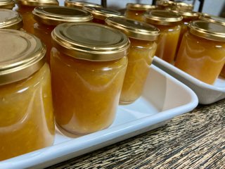 果汁、種、果肉、皮と分解していって加工します皮は茹でこぼし苦味やえぐみを取り除きます